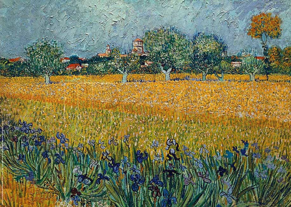 Van Gogh foi cativado pelas cores da paisagem ao redor da cidade de Arles. Ele especialmente gostou do contraste entre os campos de flores amarelas e roxas.