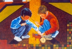 Pintora e Professora, as suas pinturas são geralmente explorações visuais de temas poderosos de afirmação de vida, do sonho, do retorno contínuo à infância, à magia das histórias infantis, à alegria dos jogos de grupo. Nesgas de paisagens aparecem, convidando-nos a sentir paz, harmonia e talvez um pouco de nostalgia de um tempo que passou mas continua dentro de nós.